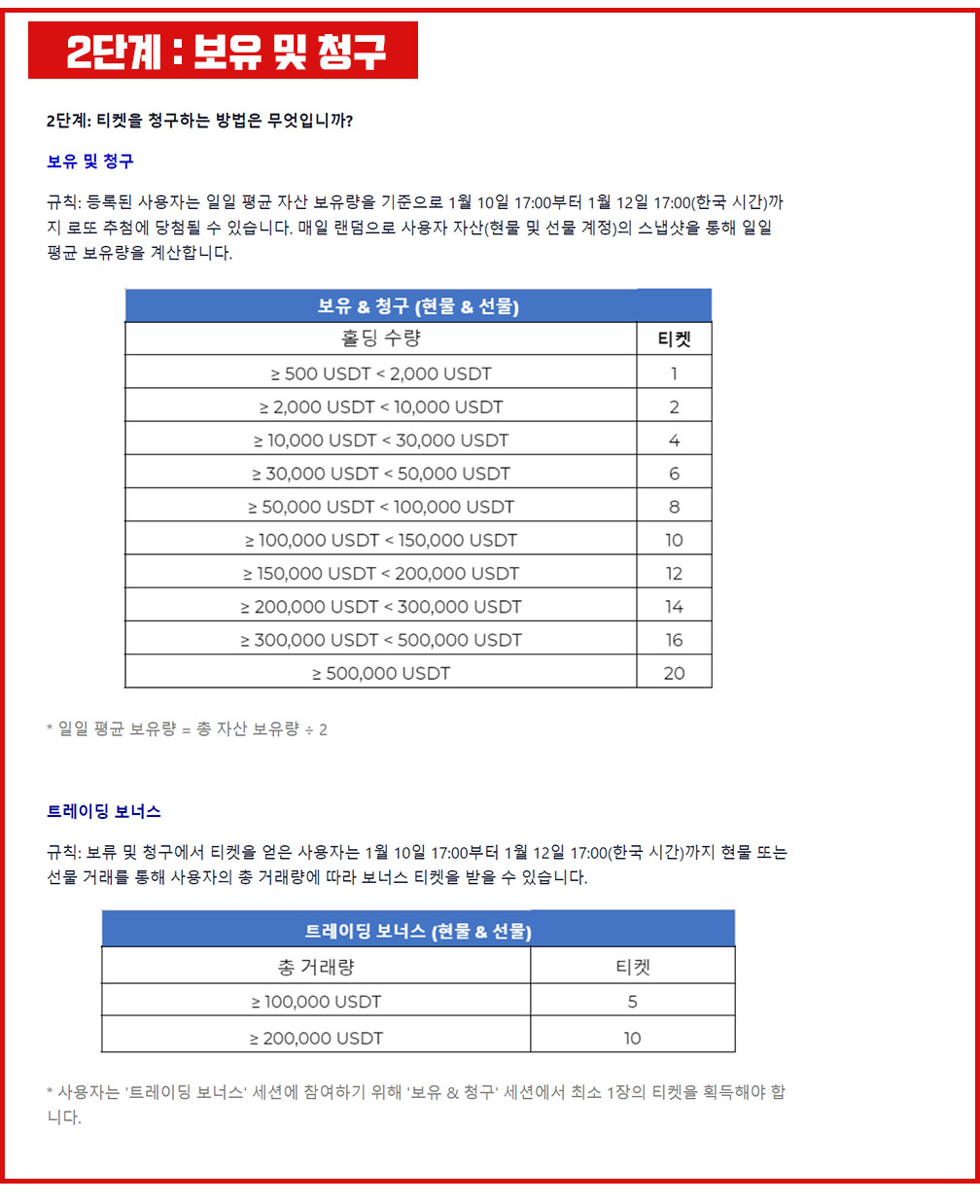 • 내가 보유하고 있는 USDT 보유량에 따라 티켓을 받는다.