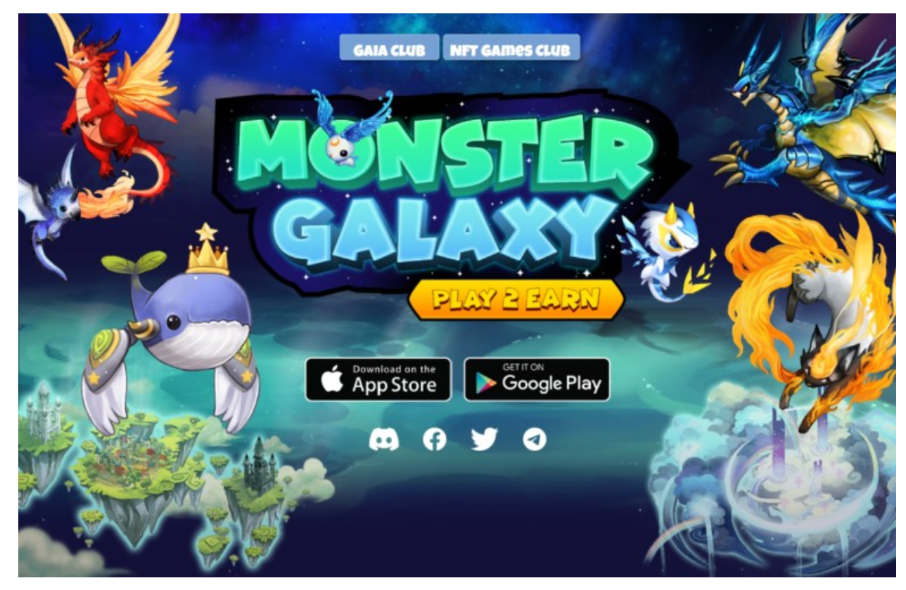 몬스터 갤럭시 P2E(PLAY TO ENE)는 포켓몬과 몬스터헌터로부터 영감을 얻어 게임 프렌차이즈로 전투와 포획을 핵심으로 한다. 적을 물리치기 위해 더 강력한 MOGA 몬스터를 잡아 훈련시켜야 하며 플레이어가 동의하면 MOGA는 블록체인에 체굴되어 실제 NFT가 되고 플레이어는 MOGA의 실질적인 소유권을 갖게 된다.