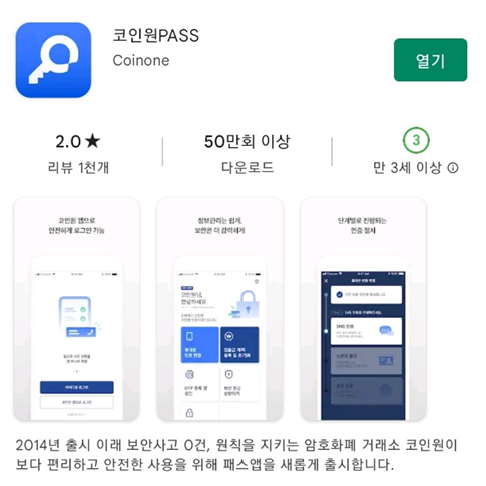 ※ 코인원PASS앱이 없다면 직접 구글 스토어에서 다운 받아도 된다.