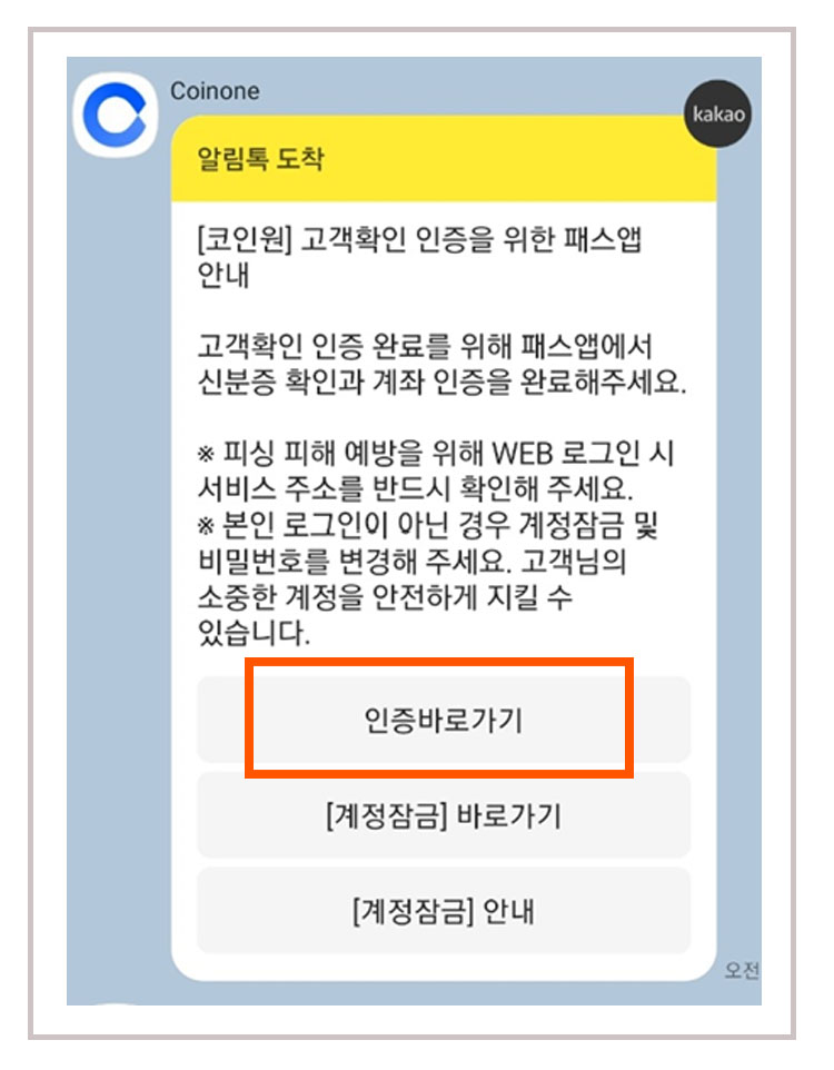 PC에서 가입 진행 중이라면 카카오톡으로 '코인원 - 패스앱 안내' 알림톡이 온다.