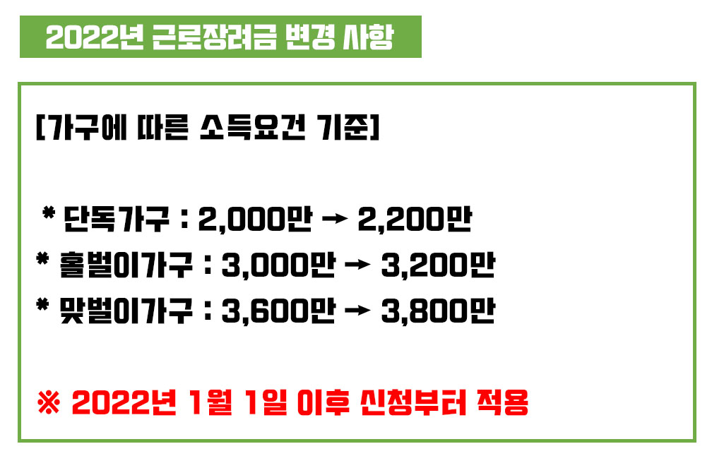 ① 2022년 근로장려금 소득기준 완화