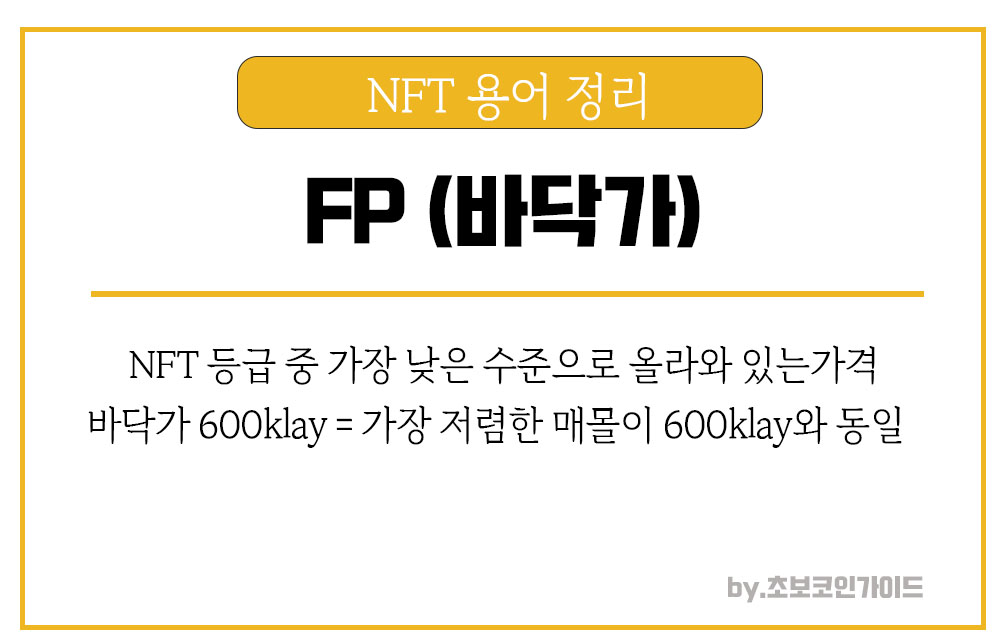 말 그대로 NFT에는 등급이 있는게 그 중 가장 낮은 수준으로 올라와 있는 가격을 구성한다. 그 중에서 가장 싼 것은 FP, 바닥이라고 부른다.