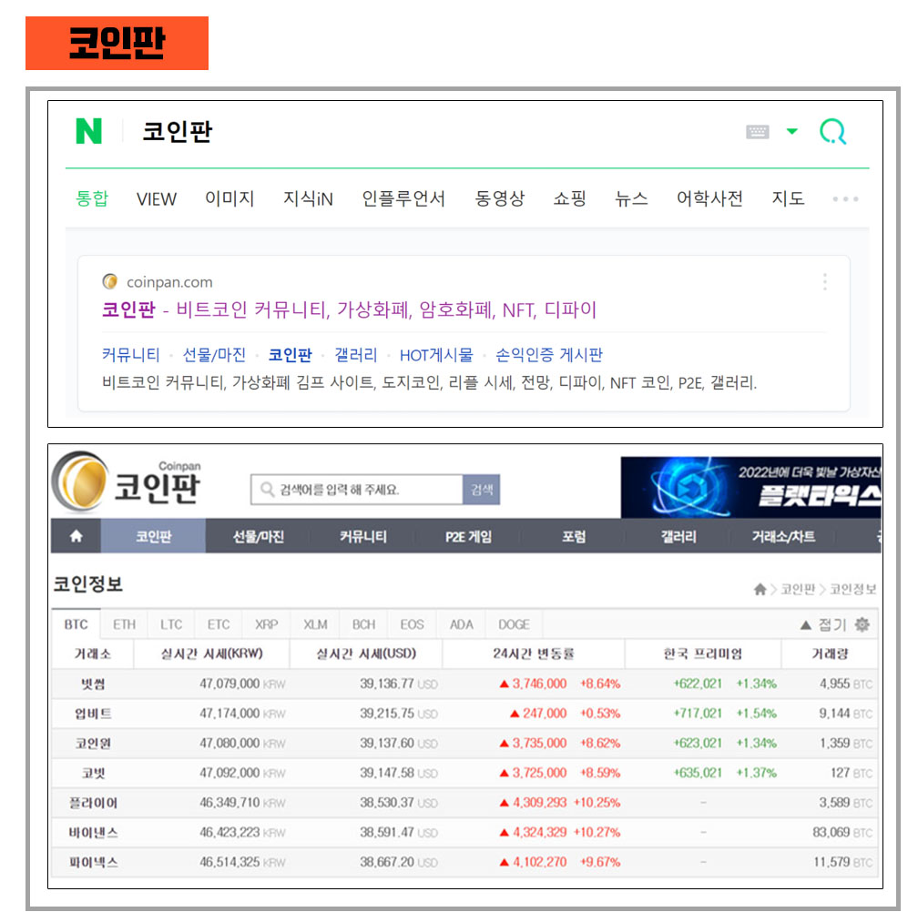 코인관련 커뮤니티에 올라오는 투자자들의 다양한 정보들을 통해 능력치를 키울 수 있다. 그 외에도 차트에 대한 분석, 코인별 시세 및 전망 등도 함께 알 수 있어서 초보코인러들에게는 이러한 정보써치가 큰 도움이 된다.