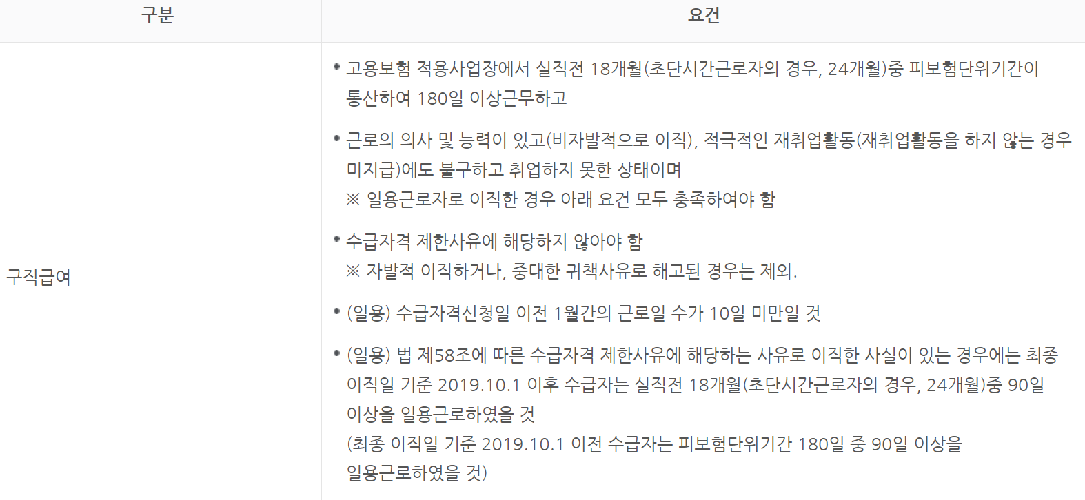고용보험법 제 40조에 따른 구직급여의 수급 요건은 아래와 같다.