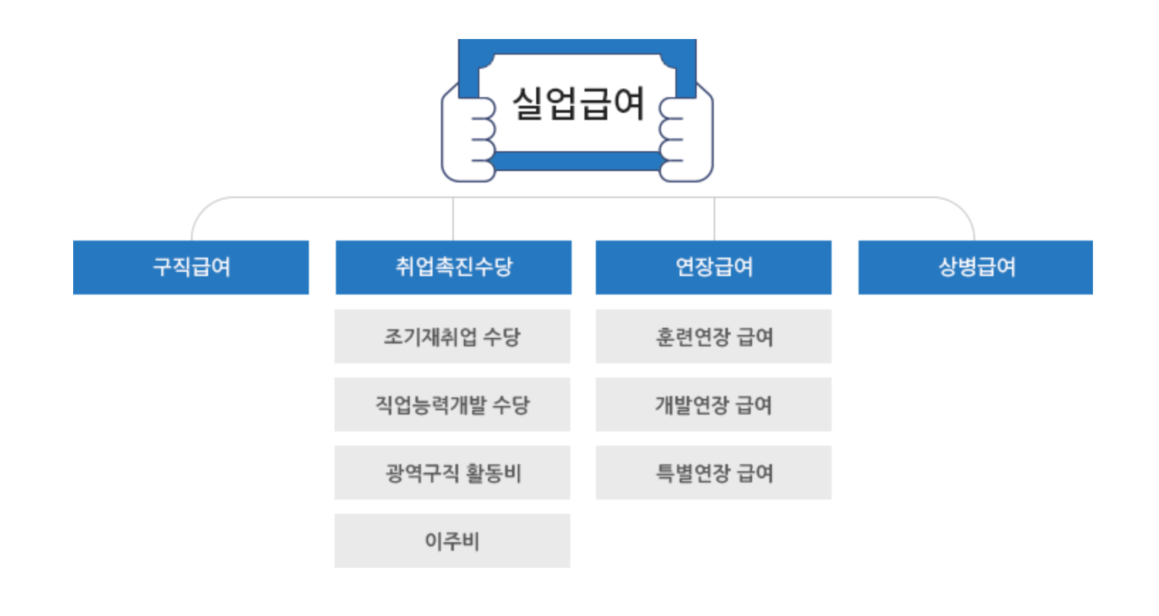 재취업 활동 기간 동안 소정의 급여를 지급하여 실업자의 생활 안정 및 재취업 기회를 지원해주는 제도로 실업급여는 크게 구직급여와 취업촉진수당으로 나누어져 있다.