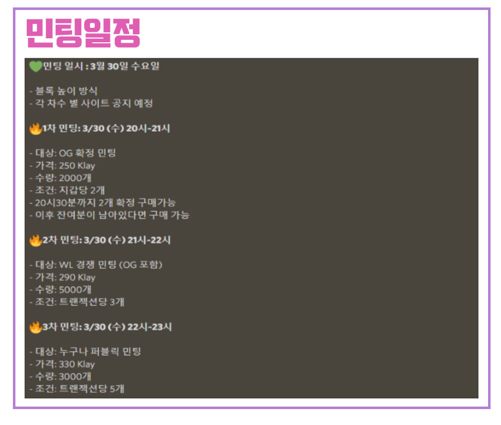 - 대상 : WL(화이트리스트) 경쟁 민팅 *OG중복참여 가능