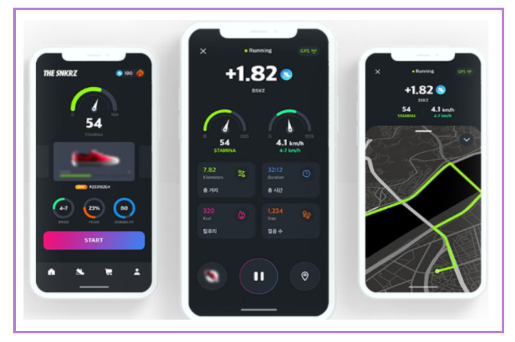 소셜피트니스 리워드 플랫폼으로 스니커즈는 메타버스 세계의 신발에 해당하는 SNKRZ NFT와 SNKRZ 어플이 존재하며 사용자는 스니커즈 NFT를 구매하고 어플에 접속해 운동 후 이를 보상받는다.
