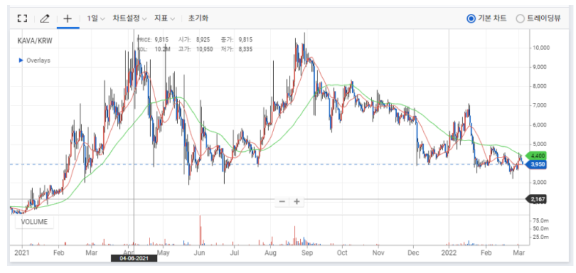 카바(KAVA) 코인 시세 추이