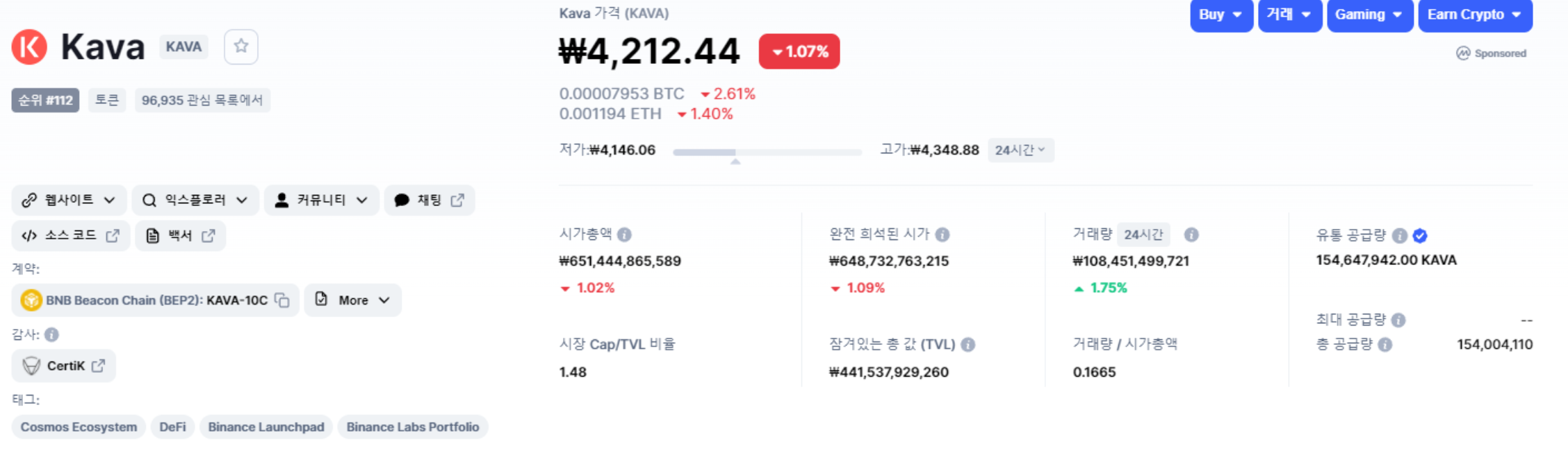 카바(KAVA)코인 시세