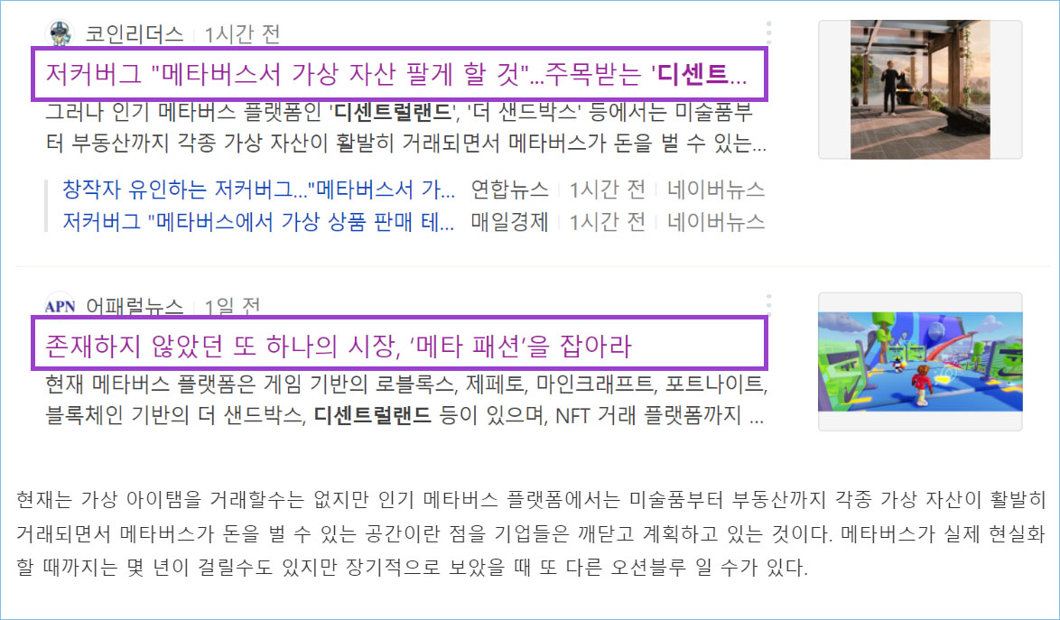 현재는 가상 아이탬을 거래할수는 없지만 인기 메타버스 플랫폼에서는 미술품부터 부동산까지 각종 가상 자산이 활발히 거래되면서 메타버스가 돈을 벌 수 있는 공간이란 점을 기업들은 깨닫고 계획하고 있는 것이다. 메타버스가 실제 현실화할 때까지는 몇 년이 걸릴수도 있지만 장기적으로 보았을 때 또 다른 오션블루 일 수가 있다.