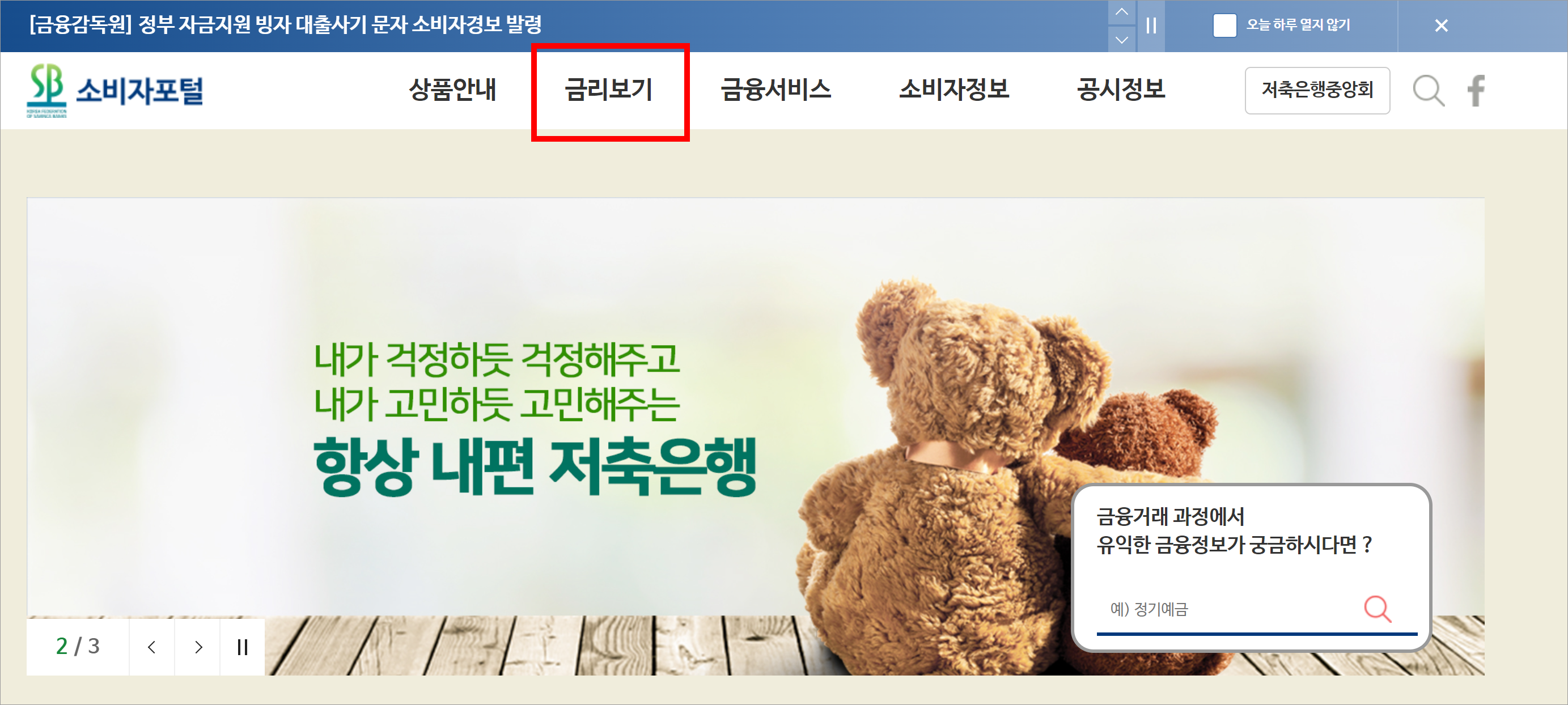 예적금 금리 비교를 하는 두 번째 방법은 [저축은행중앙회 소비자포털] 사이트에서 가능하다.