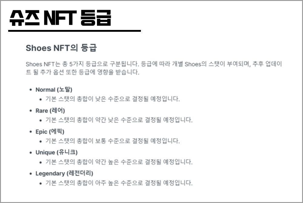 다른 M2E프로젝트와 다른 점은 리얼월드 리워드라는 개념이다. 운동화를 기반으로 한 프로젝트 답게 실물 한정판 스니커즈를 증정한다.