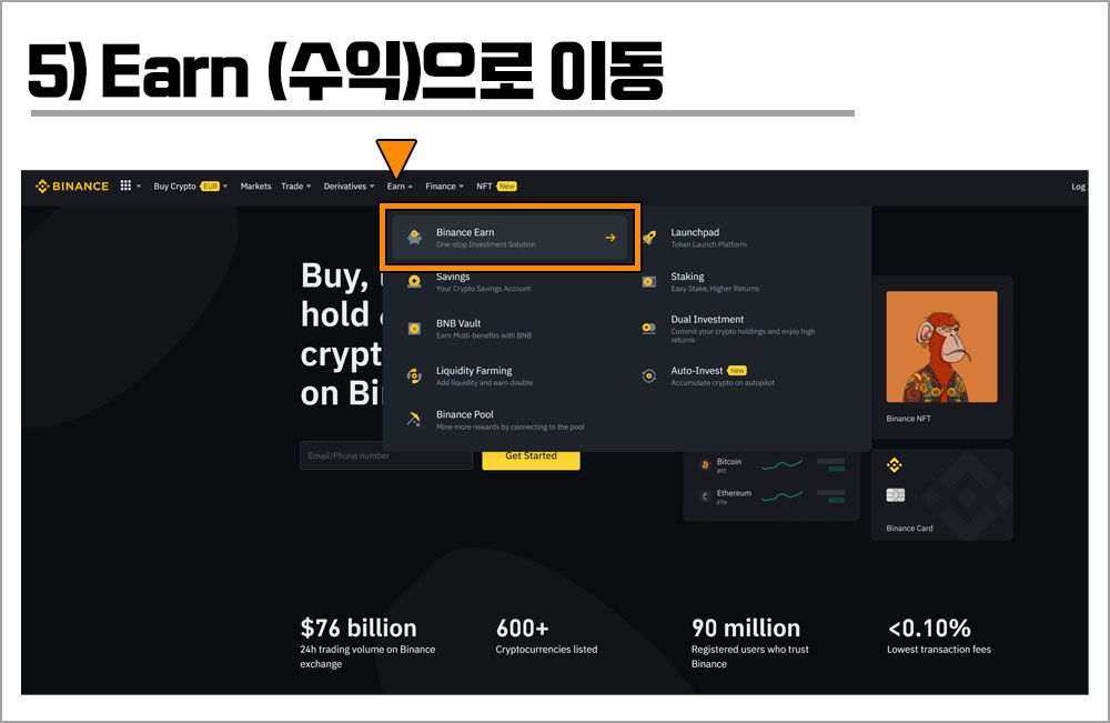 ① [Wallet] 지갑 클릭 후 [Earn] 클릭