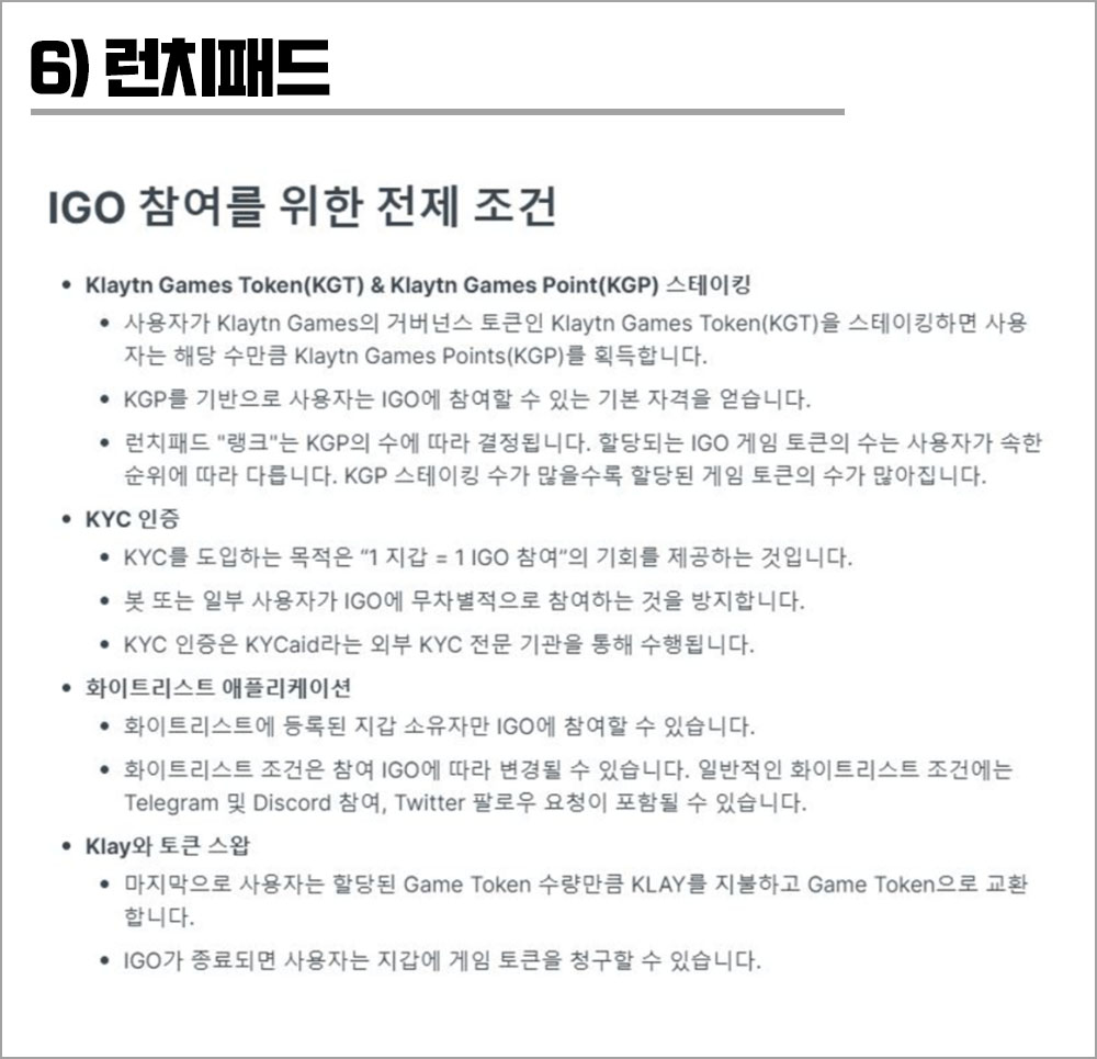 클레이튼 게임즈에서 IGO에 KYC를 두어 무분별한 봇을 차단한다.