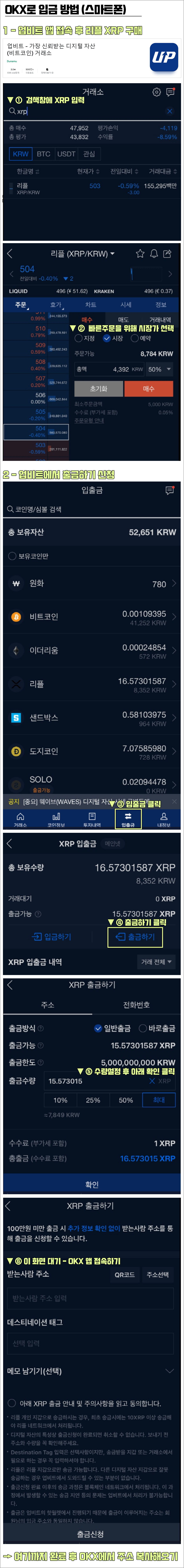 오늘은 업비트에서 출금하여 오케이엑스로 코인을 입금하는 방법에 대해 알아보았다. 모바일버젼으로 직관성이 좋고 간편하기 때문에 많은 사람들이 이용한다. 초보코인러들도 위의 방법을 천천히 따라하고 입금 방법을 숙지하자!