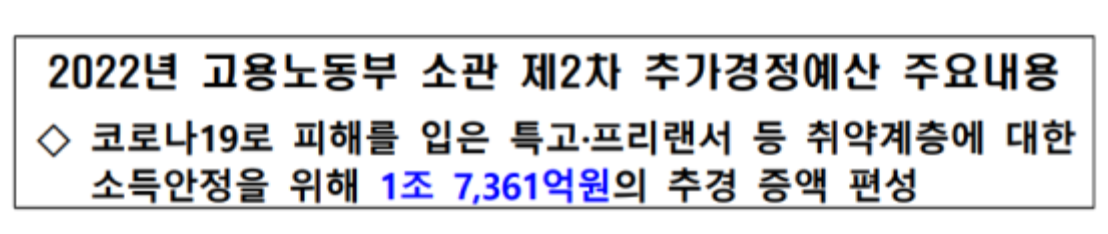 코로나 19로 피해를 입은 특고,프리랜서 등 취약계층에 대한 소득안정을 위해 1조 7,361억원의 추경 증액 편성하였습니다.