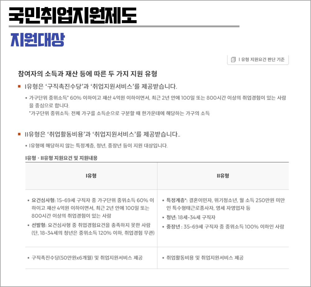 ▶ 국민취업제도 1유형 조건 - 요건심사형