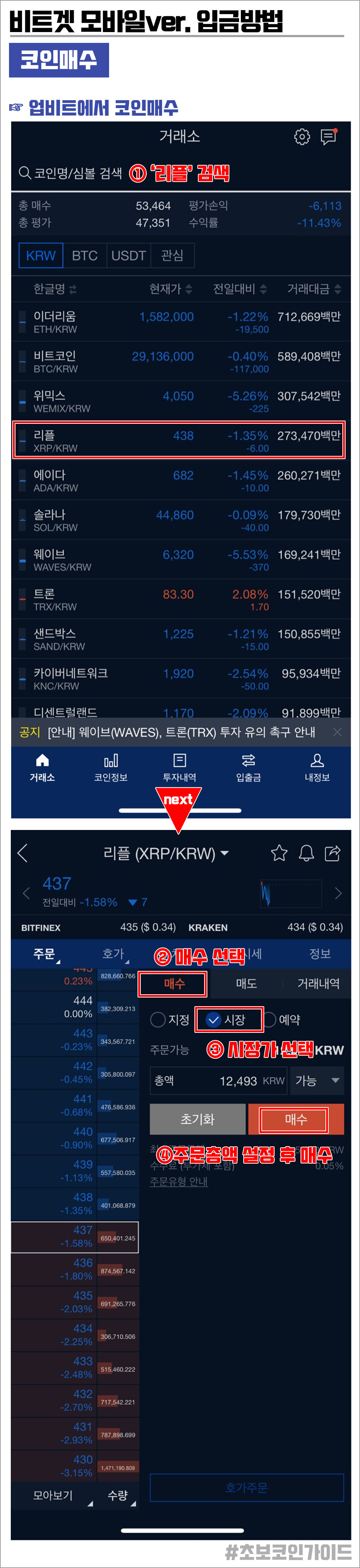 1) 업비트에서 XRP 리플 코인매수하기