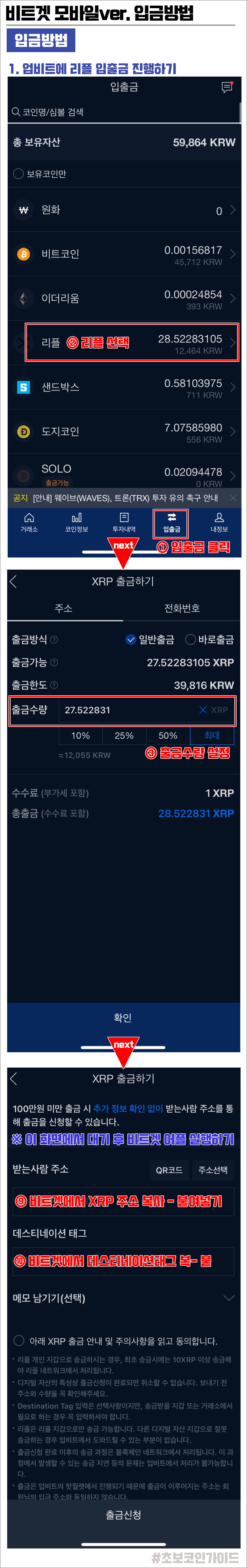 [업비트에서 리플 입출금 진행하기]