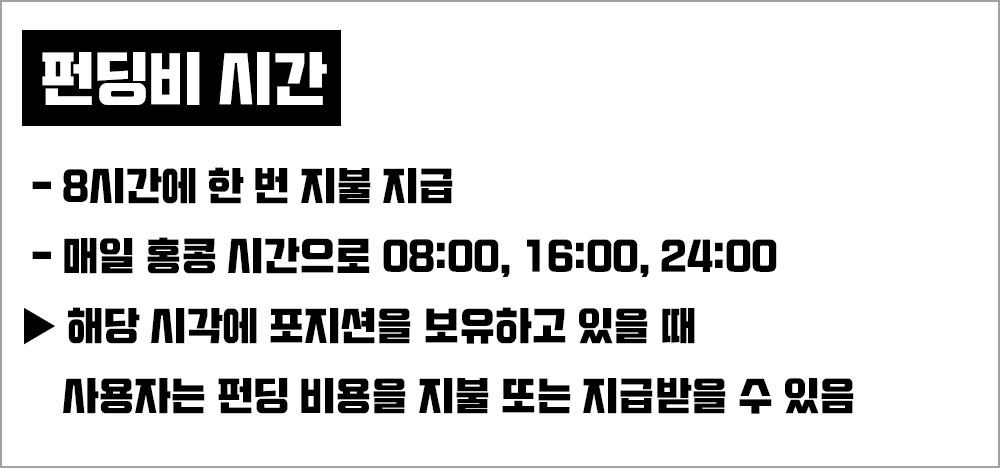 * 펀딩 비용 = 보유 포지션 가치 * 이번 회차 펀딩 비율, 이번 회차 펀딩 비율이 정수 일 때