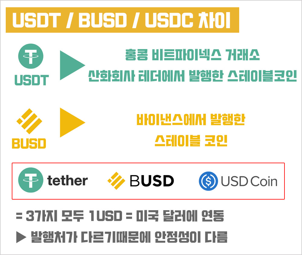 USDT / BUSD / USDC 해당 스테이블 코인의 차이점