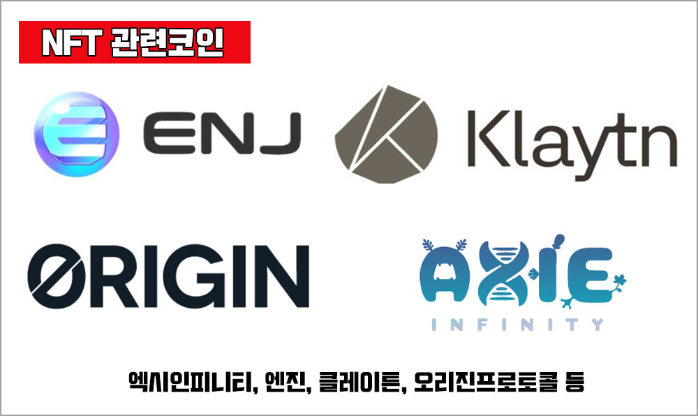 NFT 관련 코인에는 엑시인피니티, 엔진 코인, 클레이튼, 오리진프로토콜등이 있다.