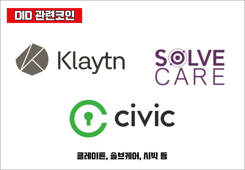 DID 관련 코인으로는 클레이튼, 솔브케어, 시빅 등이 있다.