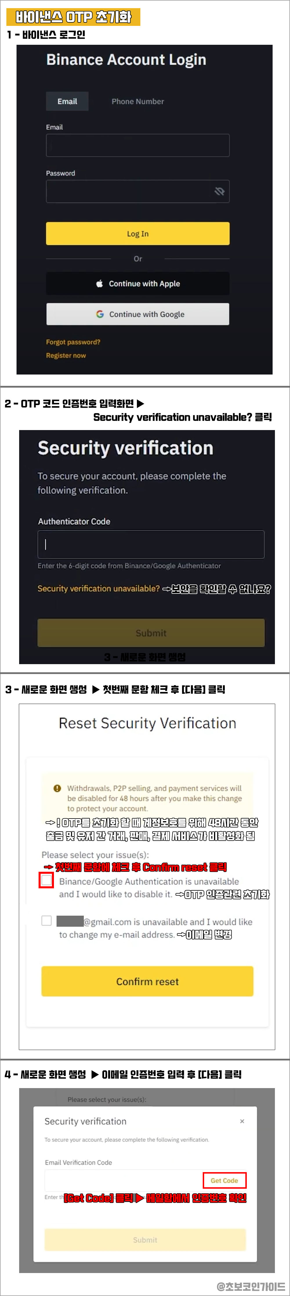 바이낸스 OTP 코드 잃어버렸을 때, OTP 초기화 방법