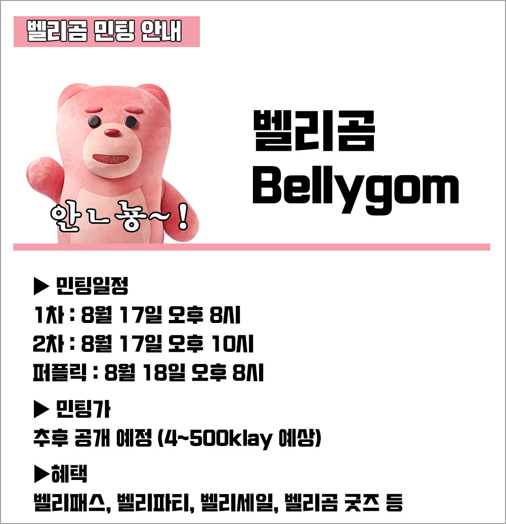 54만 구독자 벨리곰 NFT 프로젝트 민팅 및 이벤트 안내