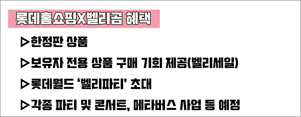 현재 롯데홈쇼핑이 공개한 벨리곰 NFT 보유자 혜택은 한정판 상품, 보유자 전용 상품 구매 기회 제공(벨리 세일), 롯데월드 '벨리파티' 초대, 향후 각종 파티 및 콘서트, 메타버스 사업 등이 예정되어 있다.