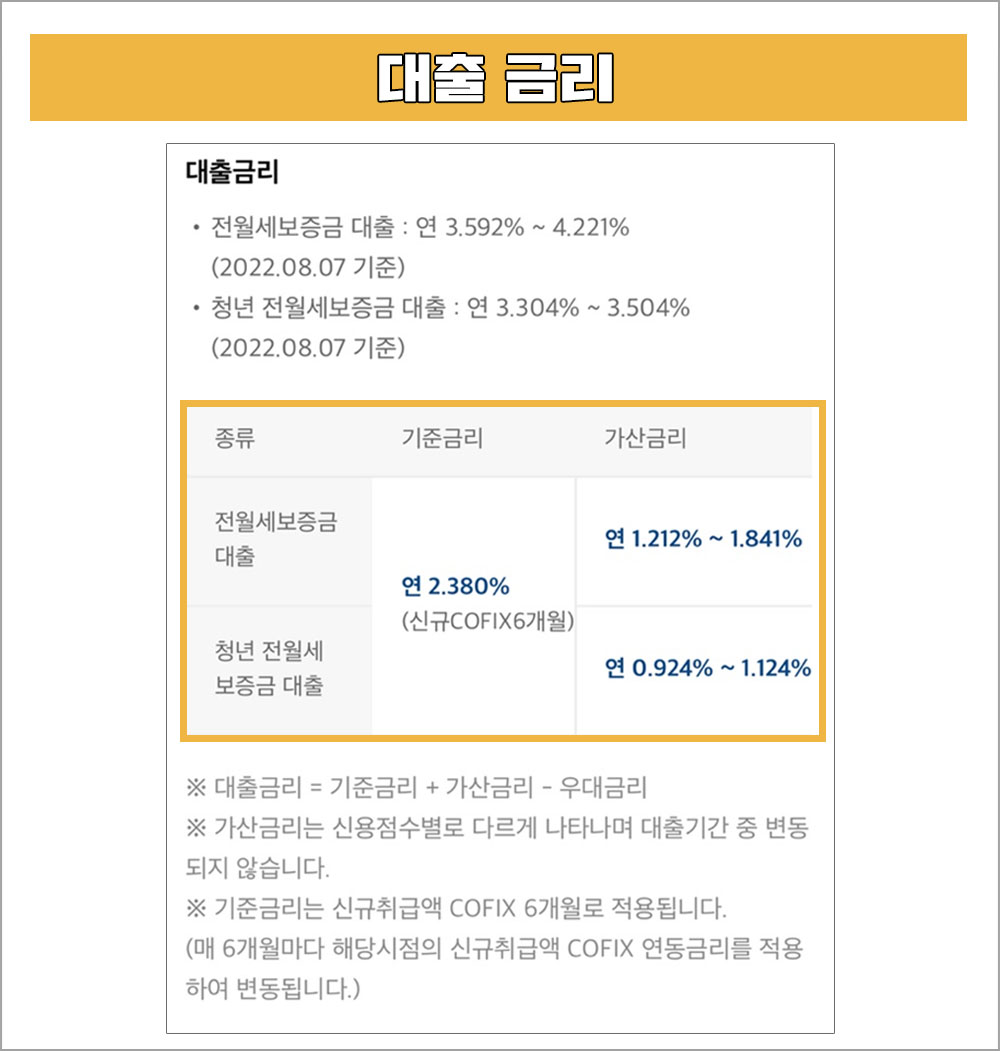 - 전월세보증금 대출 금리 : 연 3.592% ~ 4.221%