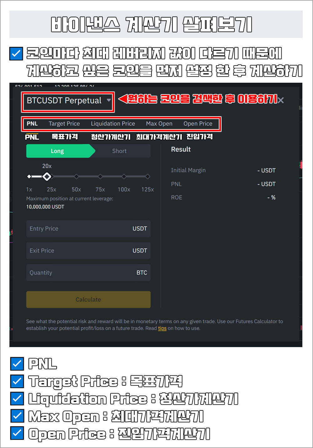 바이낸스 선물거래 심화 계산기 사용방법 따라하기