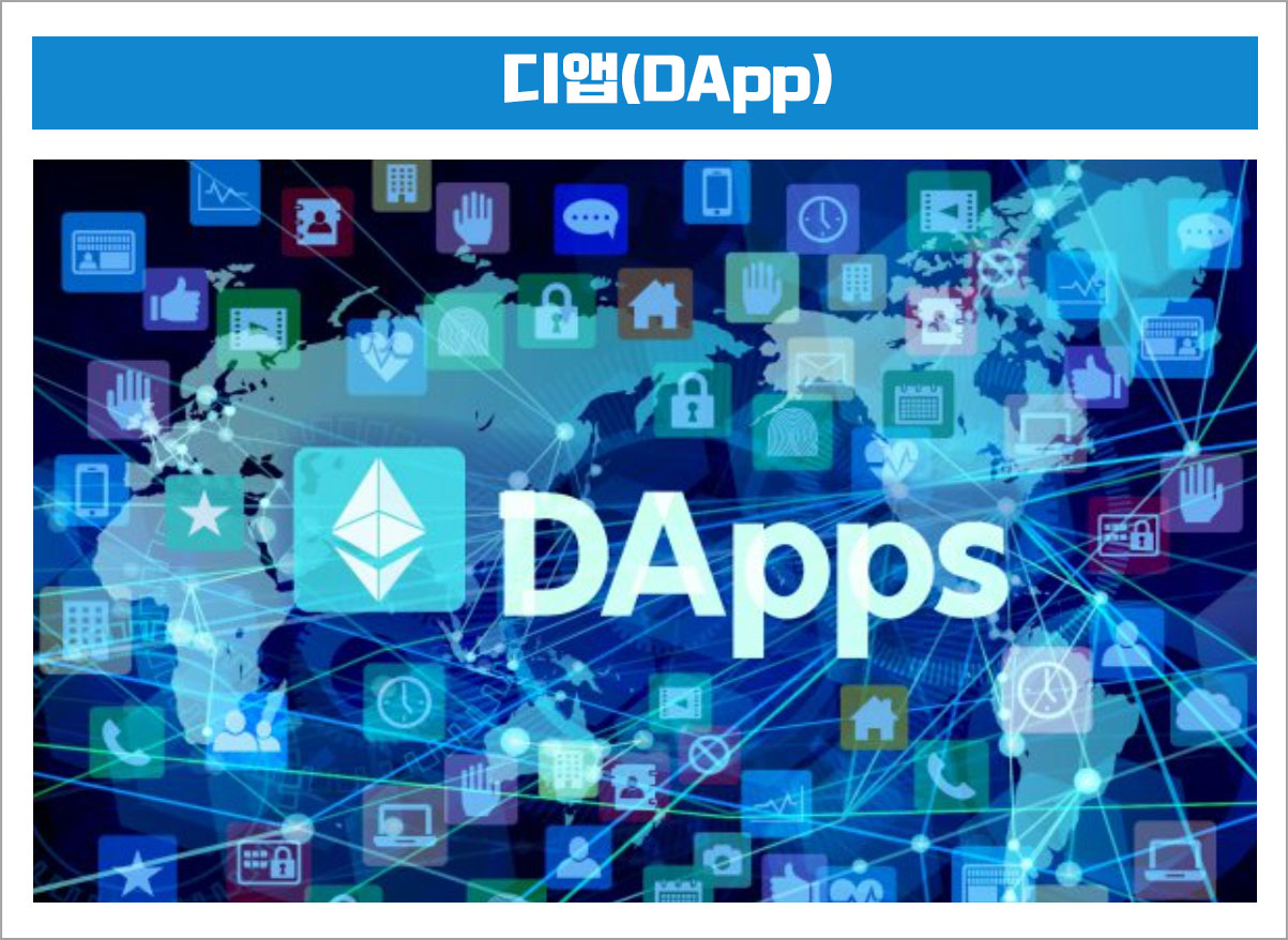 "디앱(DApp)은 Decentralized Application의 줄임말로 탈중앙화 된 애플리케이션을 뜻 함"