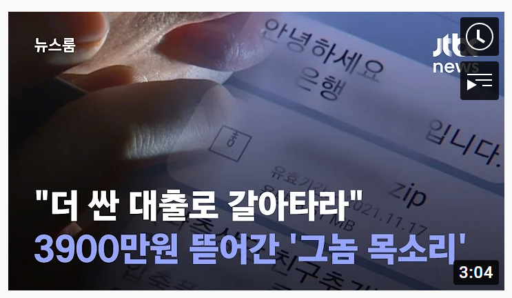 은행을 사칭하여 더 저렴한 금리로 전환시켜준다며 현금을 유도하는 보이스피싱범들이 기승을 부린다고 한다. 특히 오늘 처럼 새로운 정책이 발표되었을 때 그럴싸하게 포장하여 대출 갈아타기를 유도할 것이다.