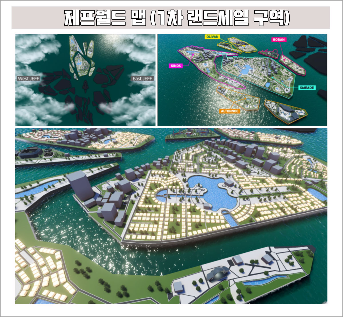 위의 사진은 제프월드의 맵과 이번에 판매되는 1차 구역이다. 제프월드는 NFT 땅과 건물이 포함되고 건물 내부는 본인 취향대로 변경할 수 있다. 아이템 생산,판매가 가능하고 마이룸에서 화분으로 식물도 키우고 식물 재배는 제프월드의 생활에서 주요한 활동으로 작용된다.