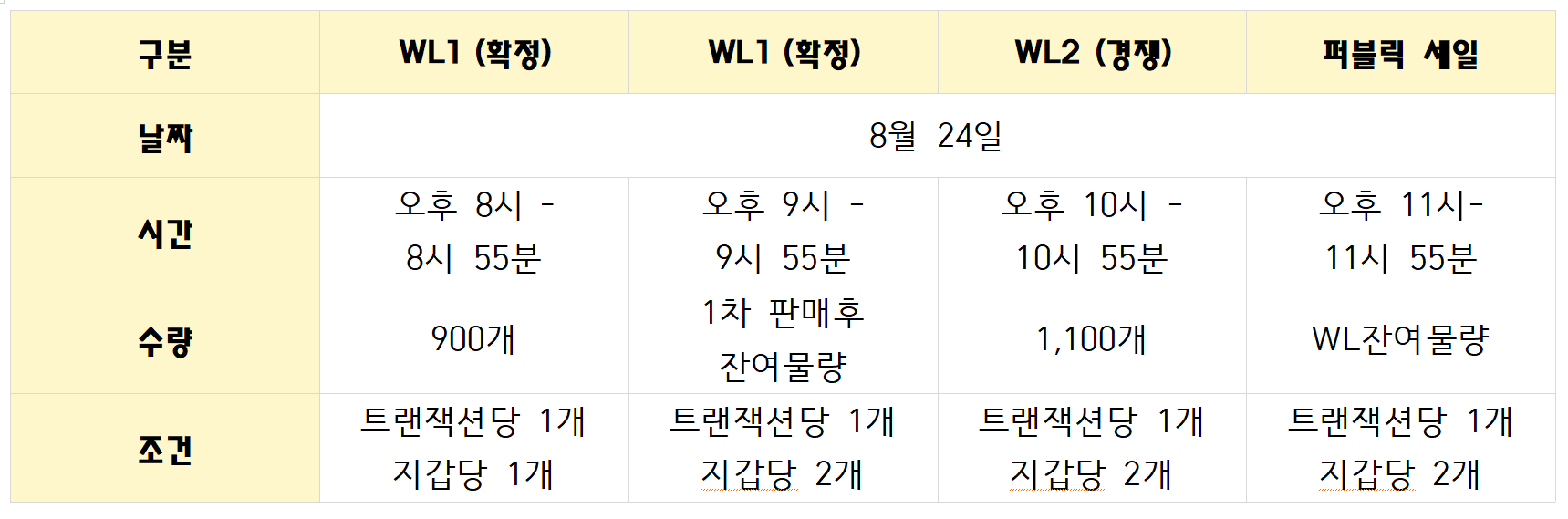 ▶WL1(확정 화이트리스트) : 8월 24일 (수)
