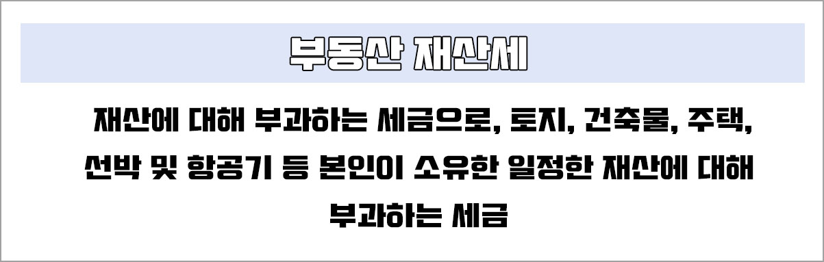 부동산 재산세는 재산에 대해 부과하는 세금으로 토지, 건축물, 주택, 선박 및 항공기 등 본인이 소유한 일정한 재산에 대해 부과하는 세금이다.