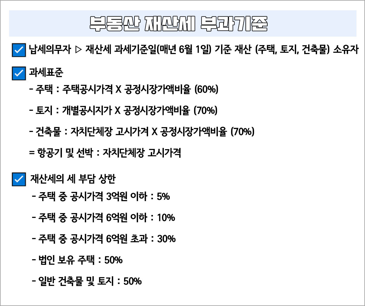 재산세 과세일 기준 매년 6월 1일 기준 재산 (주택, 토지, 건축물) 소유자