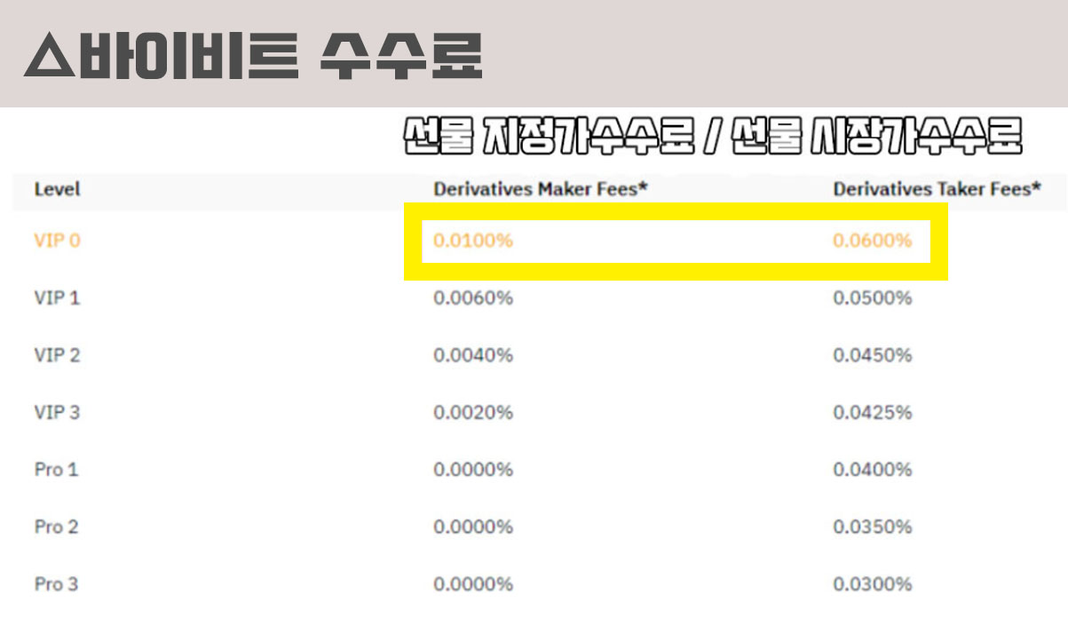 - 수수료 레벨이 높을수록 더 낮은 수수료를 적용받는다.
