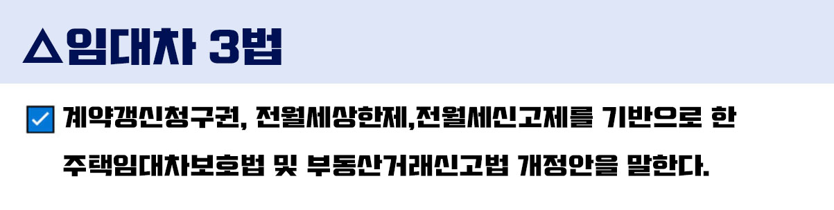 임대차 3법 계약갱신청구권, 전월세상한제, 전월세신고제