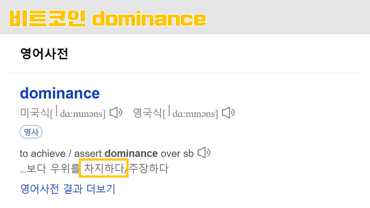 도미넌스의 사전적 의미는 차지하다, 주장하다를 뜻한다. 즉 도미넌스는 암호화폐 시장 전체 시총 중 비트코인이 차지하는 비율을 의미한다.