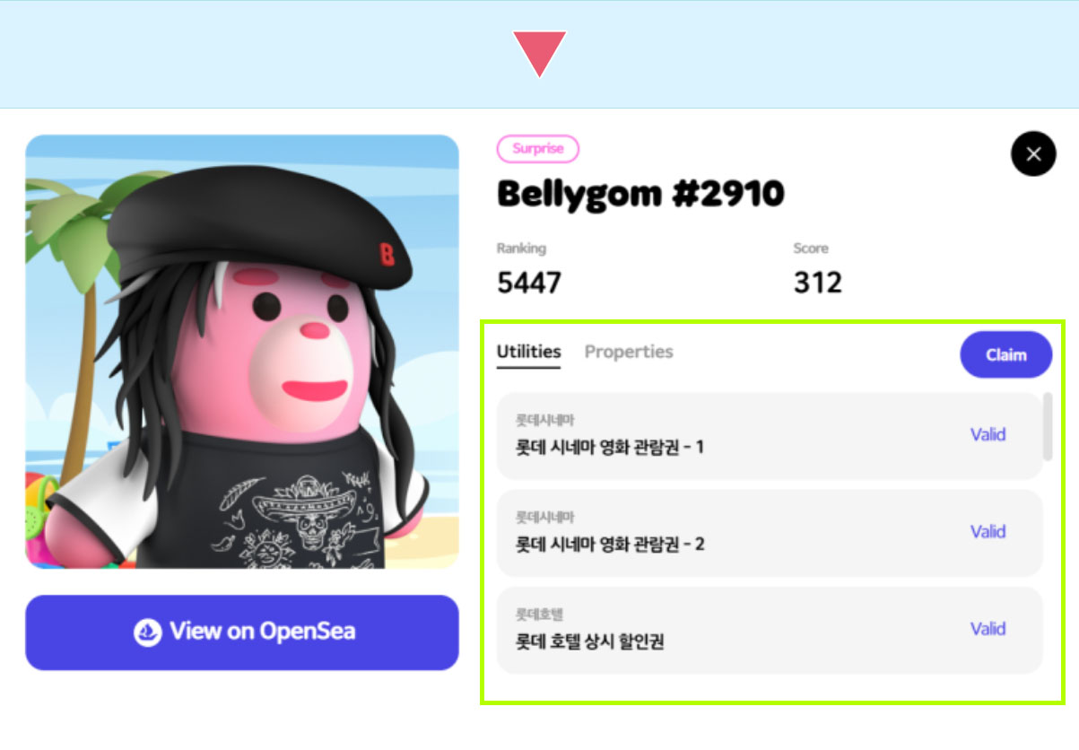 벨리곰 NFT (롯데시네마, 엘포인트) 혜택 유틸리티 수령 신청방법