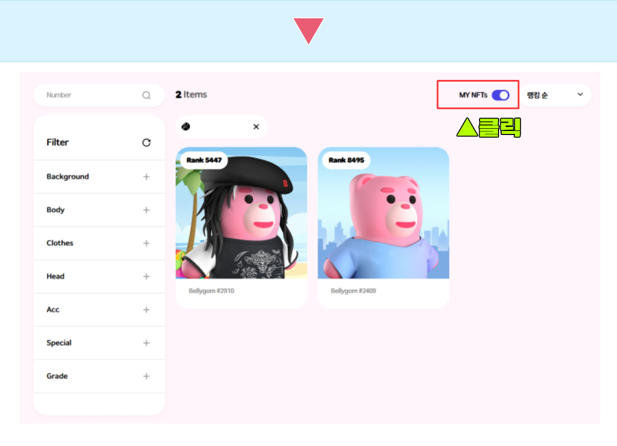 [My NFTs]를 클릭하며 바꾸면 자신이 보유한 브로들이 나타난다.