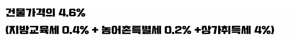 - 세율 : 4.6%(농어촌특별세, 지방교육세 포함)