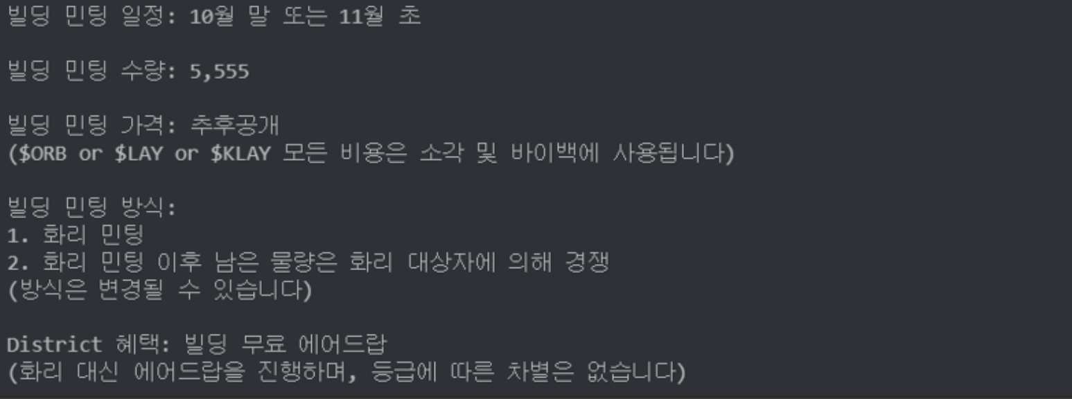 클레이시티 빌딩 NFT 민팅은 10월말 or 11월 초에 진행될 예정이다.