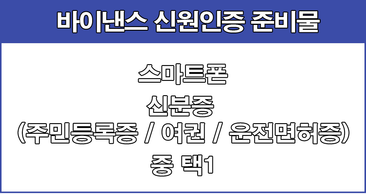 신원인증을 하려면 본인명의의 스마트폰과 신분을 인증할 수 있는 주민등록증 / 여권 / 운전면허증 중 1개를 준비해야한다.