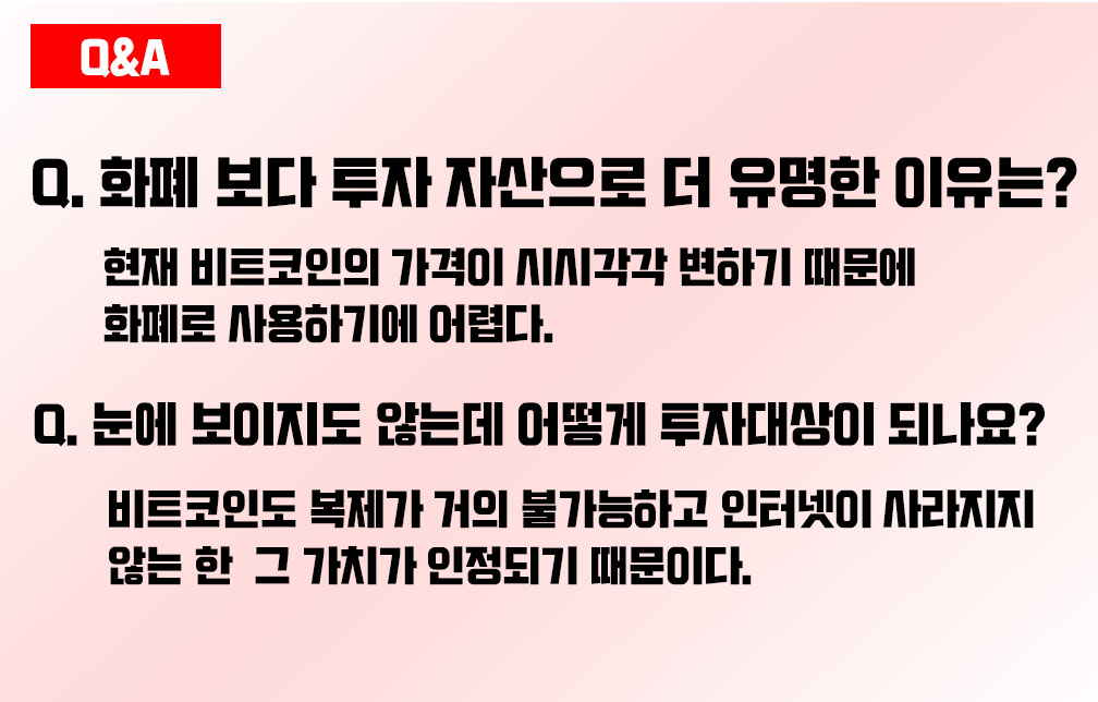 희귀성과 변하지 않는 성질때문에 금이나 다이아몬드는 그 가치를 인정받은지 오래 되었고 금테크를 하는 사람도 있다. 하지만 외계인 입장에서는 그저 지구 상에 있는 광물 중 하나일 뿐이다. 비트코인도 마찬가지인 것이 복제가 거의 불가능하고 인터넷이 사라지지 않는한 그 가치가 손상되지 않을 것이고 블록을 새로 만들 때마다 데이터 용량이 커지기 때문에 다음 블록을 만들기가 더 어렵고 이 단계가 높아질 수 록 더 많은 컴퓨터가 더 많은 전력을 사용하며 연산을 해야하기 때문에 투자의 가치가 점점 높아진다.