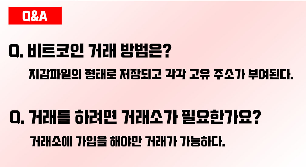 비트코인은 지갑 파일의 형태로 저장되고 각각의 고유 주소가 부여되고 이 주소를 기반으로 코인 거래가 이루어진다.