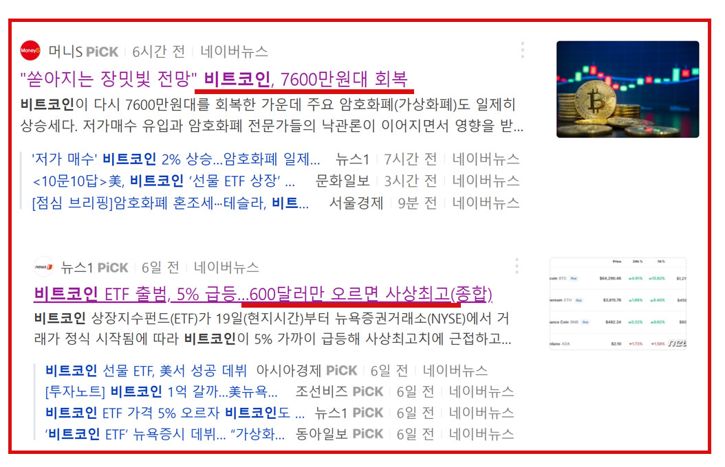 최근 비트코인이 인플레이션에 대비하는 금과 유사한 대체 자산으로 주목받는 점과 ETF 상장으로 영향을 끼친 것이다. 그러나 최고가를 기록했다고 무조건 좋아할 것이 아닌것은 통계 상 이렇게 최고가를 찍고 폭락한 경우도 있었기 때문에 무조건 오른다고 투자할 것이 아니고 차근차근 공부하며 신중한 접근을 통해 현명한 투자를 할 필요가 있다.