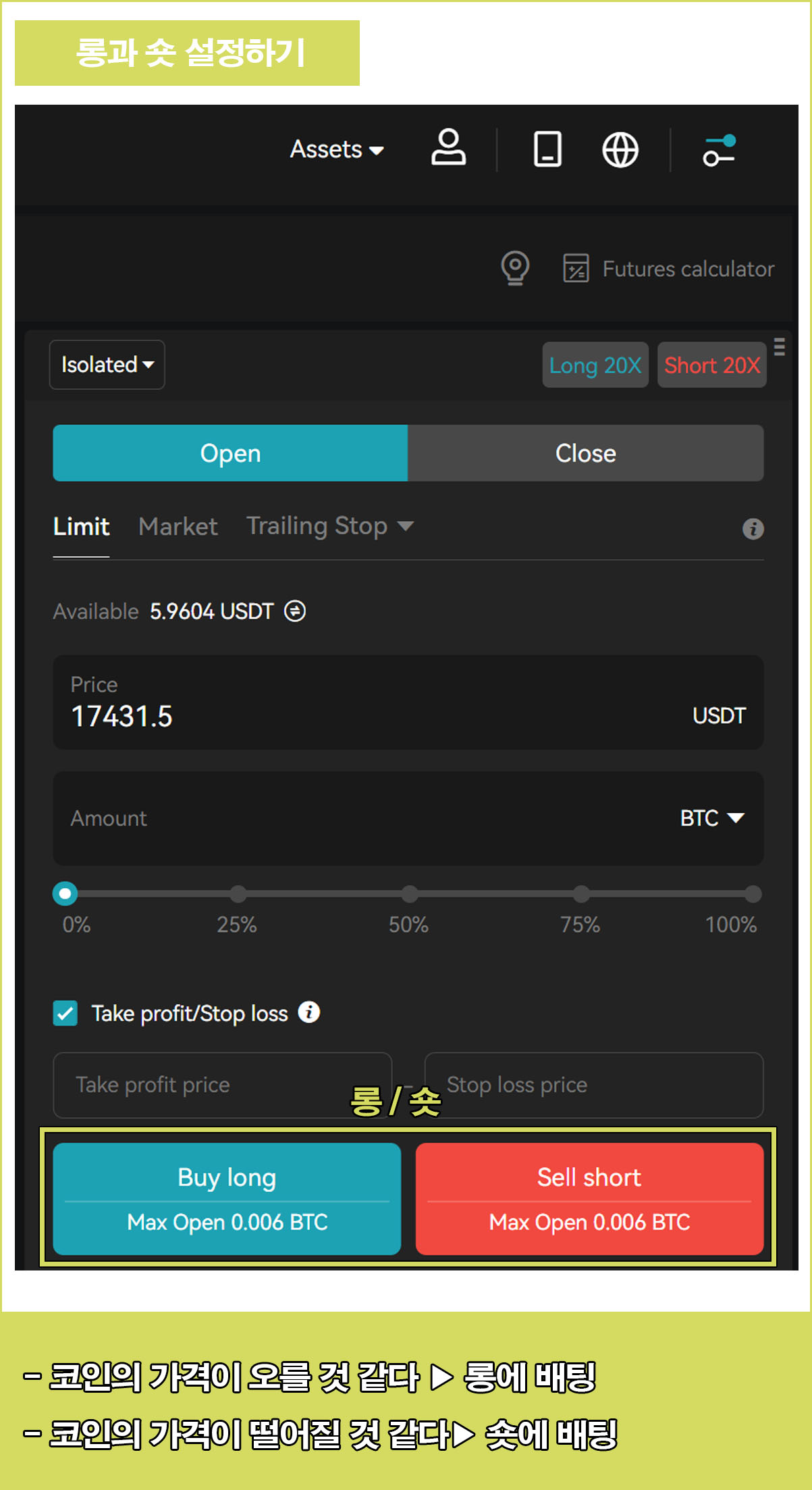 비트코인의 가격이 오를 것 같으면 [롱]에 배팅을 걸고